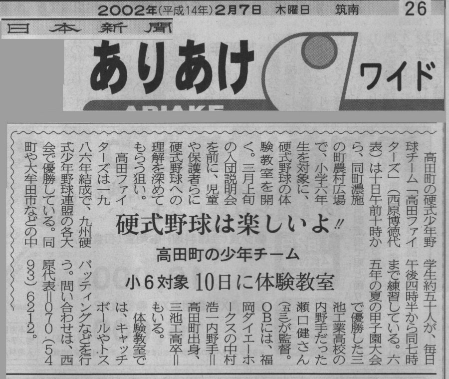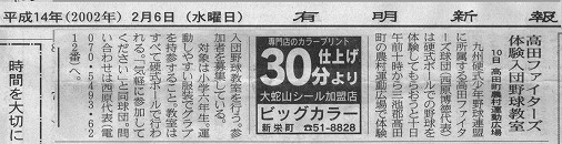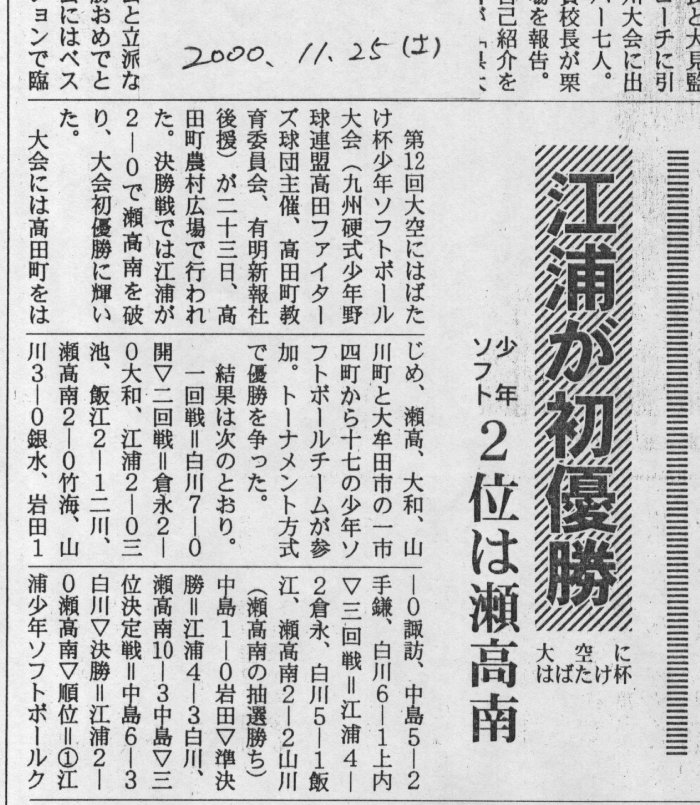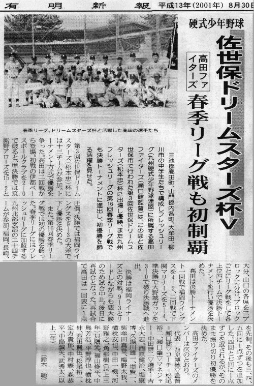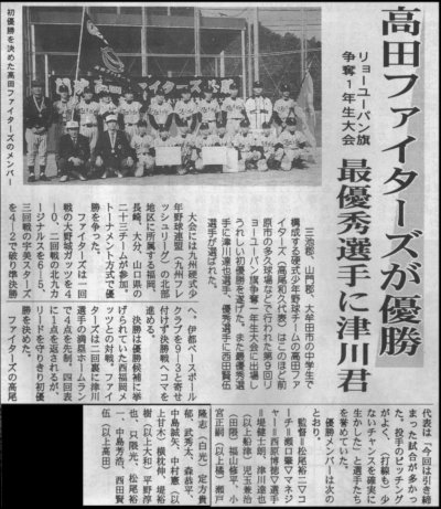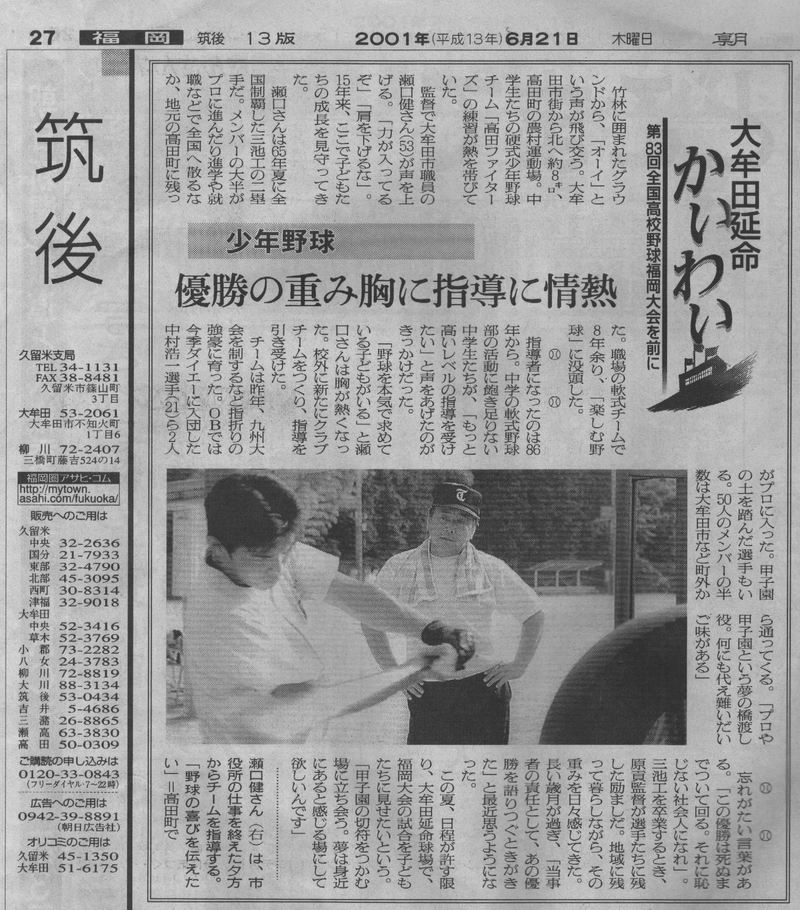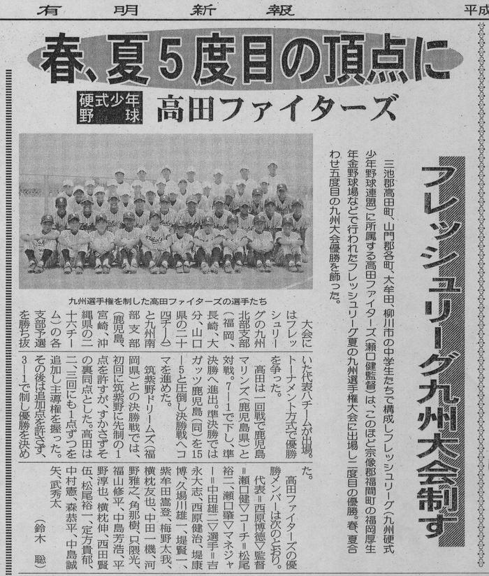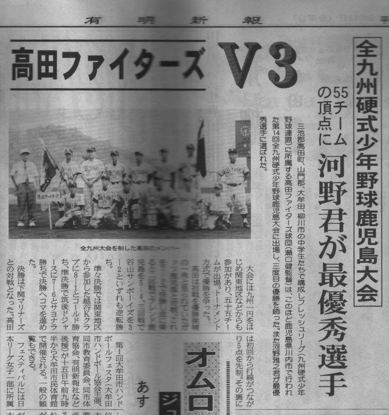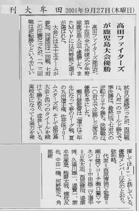 鹿児島大会優勝の件で新聞社に送った記事原稿 H13